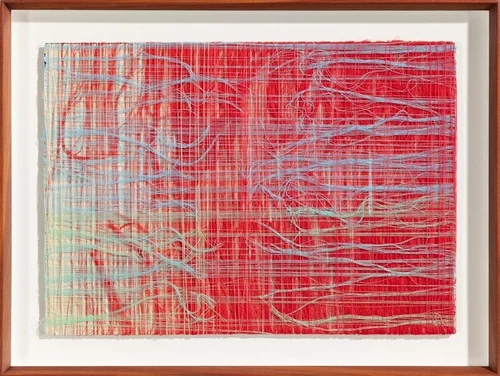 Formally, the work contrasts tightly strung, carefully graded threads—meticulously ordered by color and tone—with a counterpoint of fine threads that tumble, unravel, and let go. These loose threads are stopped by the pressure of the frame’s glass, symbolizing the act of catching what matters—saving the baby from the bathwater.