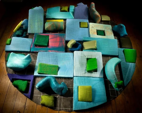 Coming Together / Pulling Myself Together: 2018, 30 cm x 210 cm x 210 cm. Reincarnated artwork, paper, acrylic paint, polyester thread